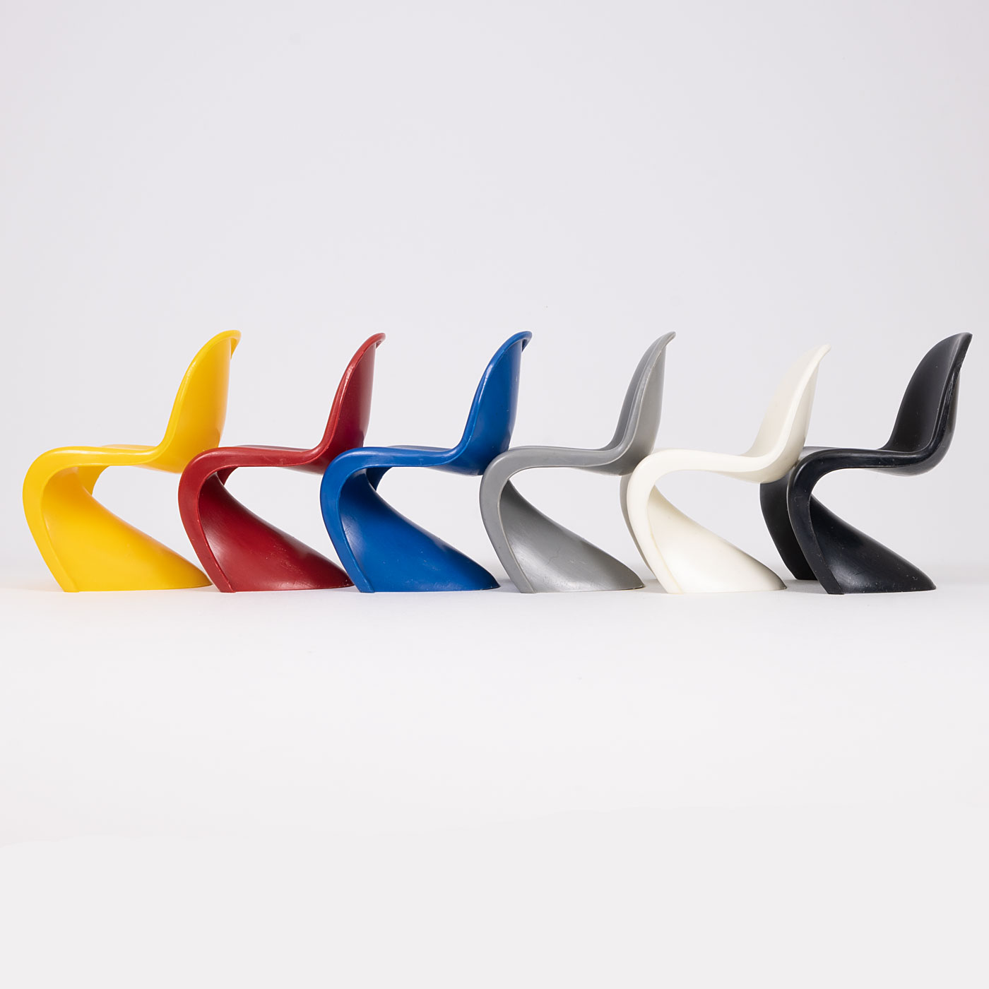 Bereits Mitte der 1950er Jahre entwarf Verner Panton den s-förmigen und freischwingenden Stuhl aus einem durchgängigen Stück Kunststoff. In den Folgejahren wurde der Stuhl immer wieder modifiziert und schließlich konnten im Jahr 1967, nach fast zehnjähriger Entwicklungsarbeit, die ersten Serienstühle produziert werden.