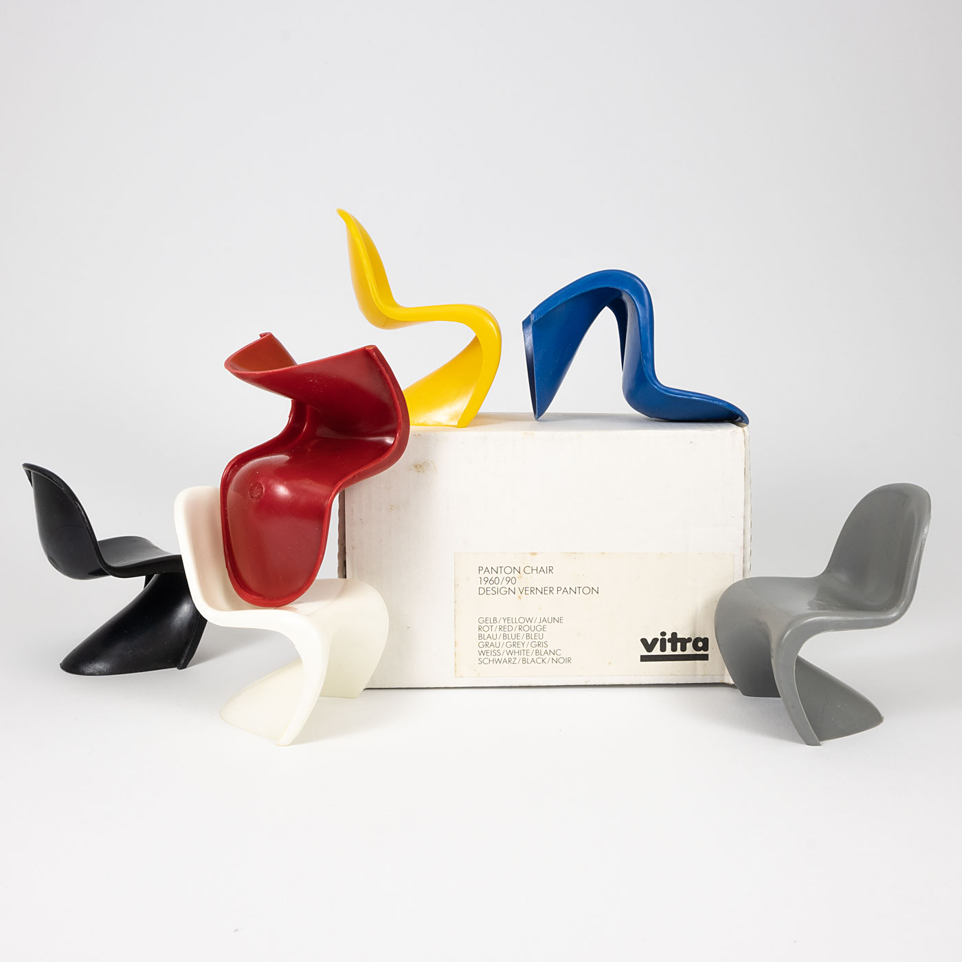 Das 6er Set der hier abgebildeten Miniaturen wurde von Vitra hergestellt und stammt vermutlich aus der Zeit, bevor die Vitra Miniatures Collection des Vitra Design Museums im Jahr 1992 hergestellt wurde.