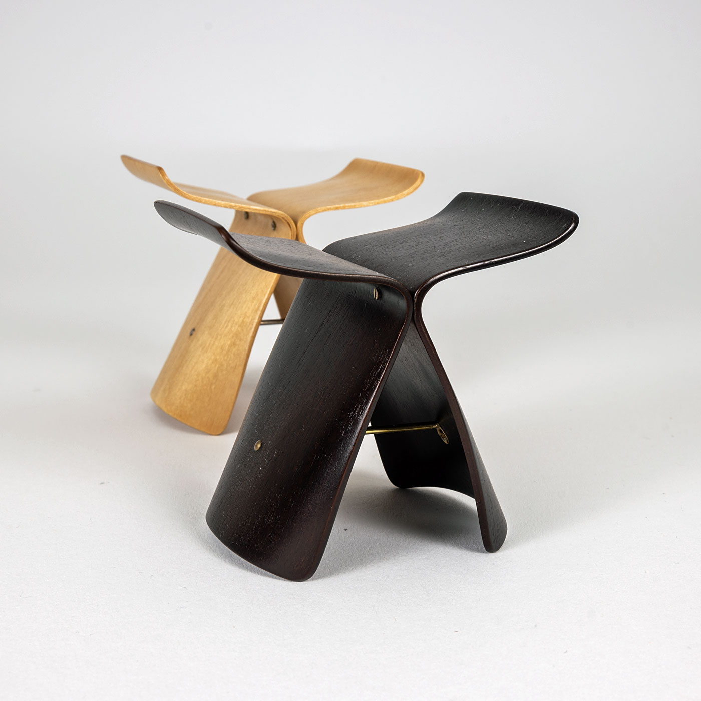 Der Butterfly Stool ist ein Entwurf des japanischen Designers Sori Yanagi. Yanagi entwarf den Hocker im Jahr 1954 und brauchte zwei weitere Jahre um die Entwicklung des eigentlich sehr einfach erscheinenden Hockers abzuschließen. Auch der japanische Hersteller Tendo Mokko benötigte einige Jahre um die Voraussetzungen für eine Serienproduktion, der damals kaum bekannten Sperrholz-Verformung, zu schaffen. Sehr hilfreich waren dabei die von Charles und Ray Eames aber auch von Alvar Aalto entwickelten Techniken dieser neuartigen Verarbeitung von Sperrholz.