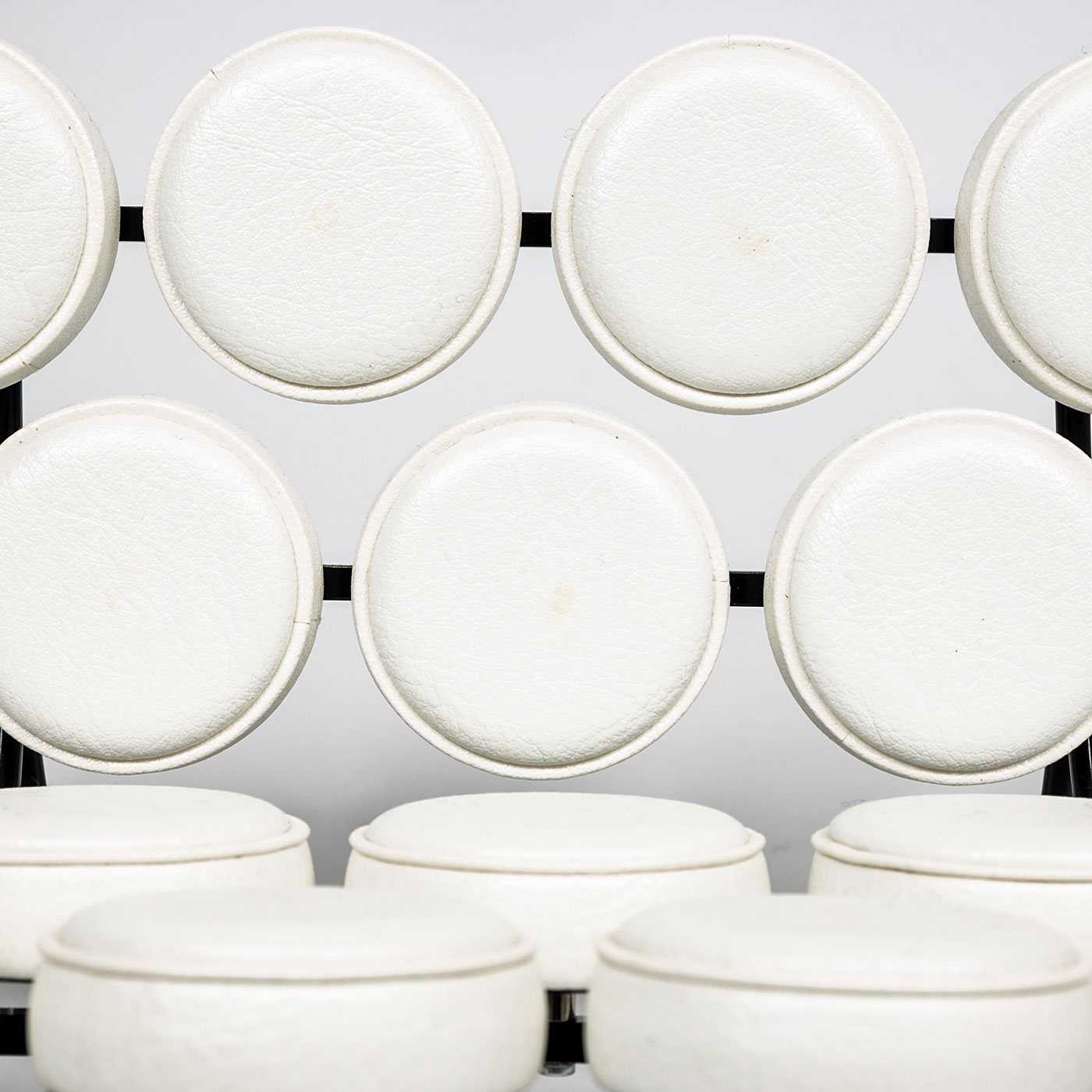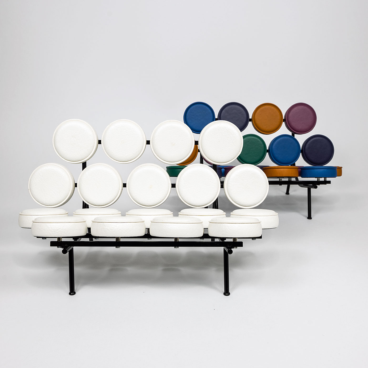 Noch heute wird das Marshmallow Sofa hergestellt. Zwischen zwei Sofas lässt sich ein Verbindungselement mit sechs einzelnen Kissen montieren, wodurch unterschiedlich lange Konfigurationen entstehen.