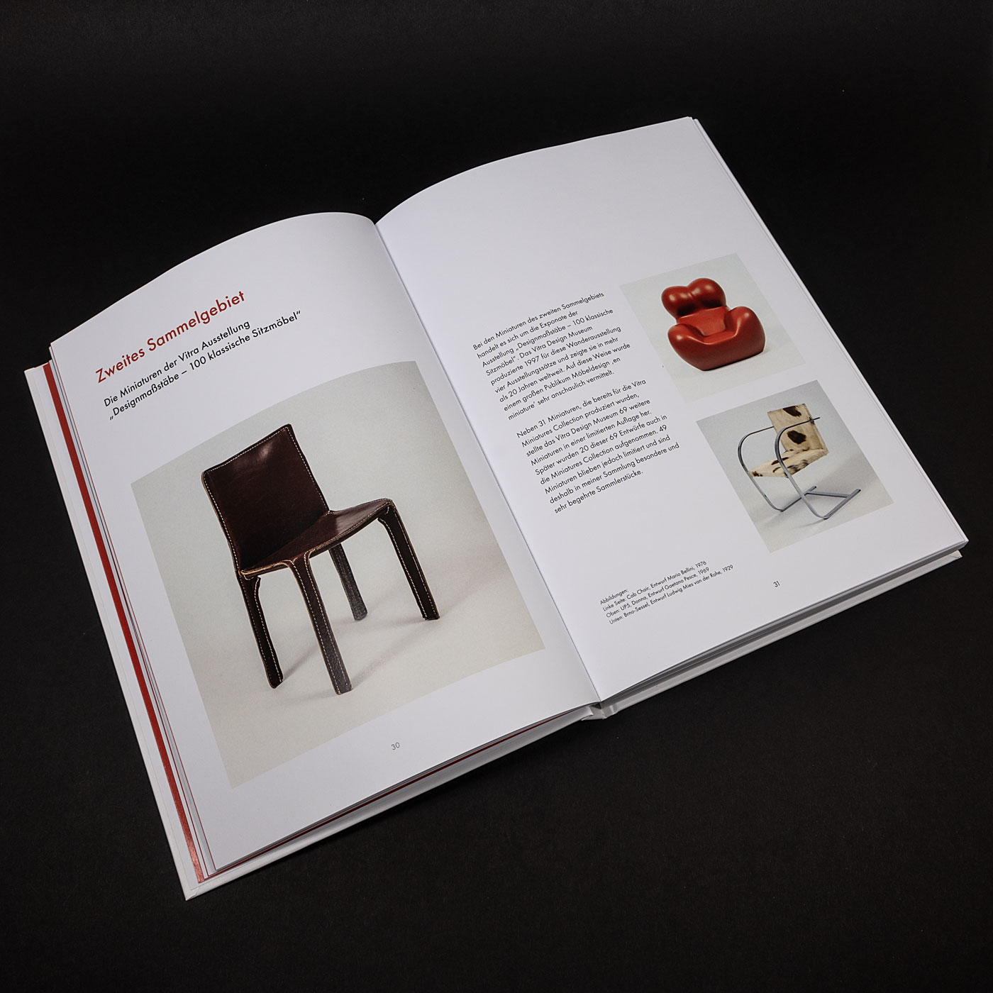 69 auf sechs Exemplare limitiert hergestellte Miniaturen und 31 Modelle aus der bereits seit 1992 aufgelegten „Vitra Miniatures Collection“ bilden die Sammlung. Im Laufe der folgenden Jahre gingen 20 weitere dieser Modelle in die Serienproduktion. Bei den limitiert angefertigten Miniaturen handelt es sich u.a. um Modelle wie den Windsor Stuhl, einem Entwurf aus der zweiten Hälfte des 18. Jahrhunderts, den Rohrrahmenstuhl von Gerrit Rietveld, den aus einem Stück Sperrholz gebogenen Sessel des englischen Designers Gerald Summers oder auch den Sitzgerät Colani von Luigi Colani. Auch gehört der Faltstuhl Plia, der wegen seines patentierten Monogelenks Designgeschichte schrieb, dazu und natürlich der Klassiker unter den Klassikern, der Brno Sessel, den Ludwig Mies van der Rohe 1929 für die Einrichtung der Villa Tugendhat in Brünn entwarf.