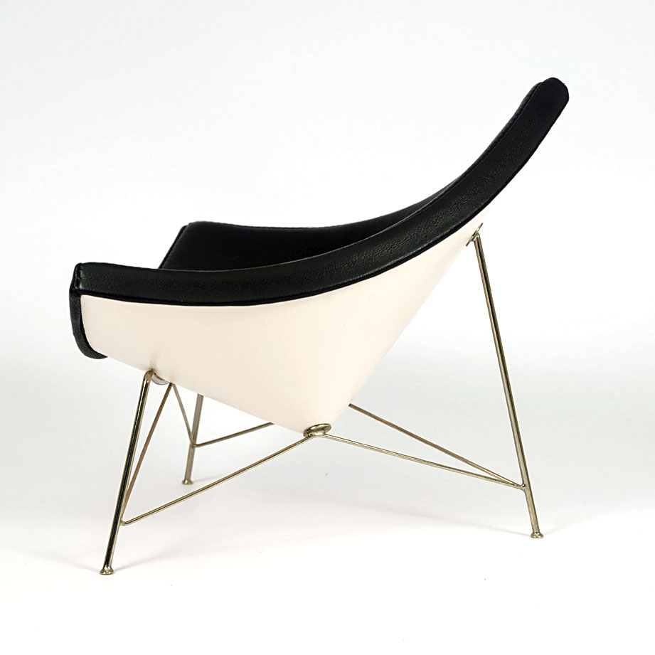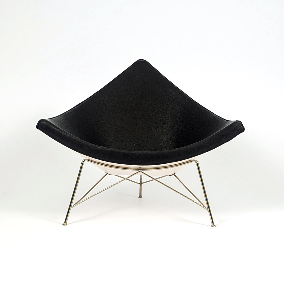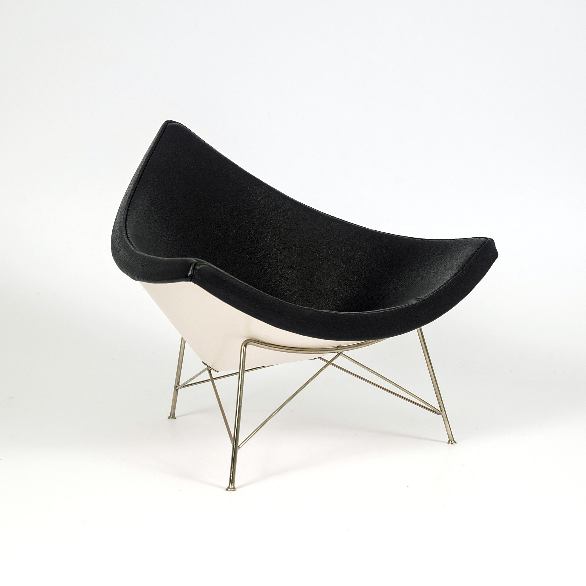 Beim Entwurf des Coconut Chairs von 1955 spielte der damalige Nelson-Mitarbeiter George Mulhauser eine wesentliche Rolle. Die Sitzschale besteht aus einem gebogenen Aluminiumstück und ist zur Innenseite hin gepolstert. In frühen Produktionen wurde die Schale aus glasfaserverstärktem Kunststoff gefertigt. Das leichte Untergestell besteht aus verchromtem Rundrohr mit dünnen, stabilisierenden Querstreben.