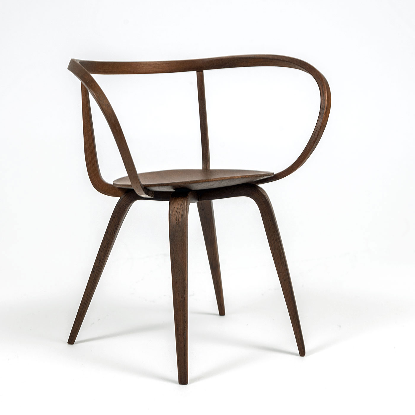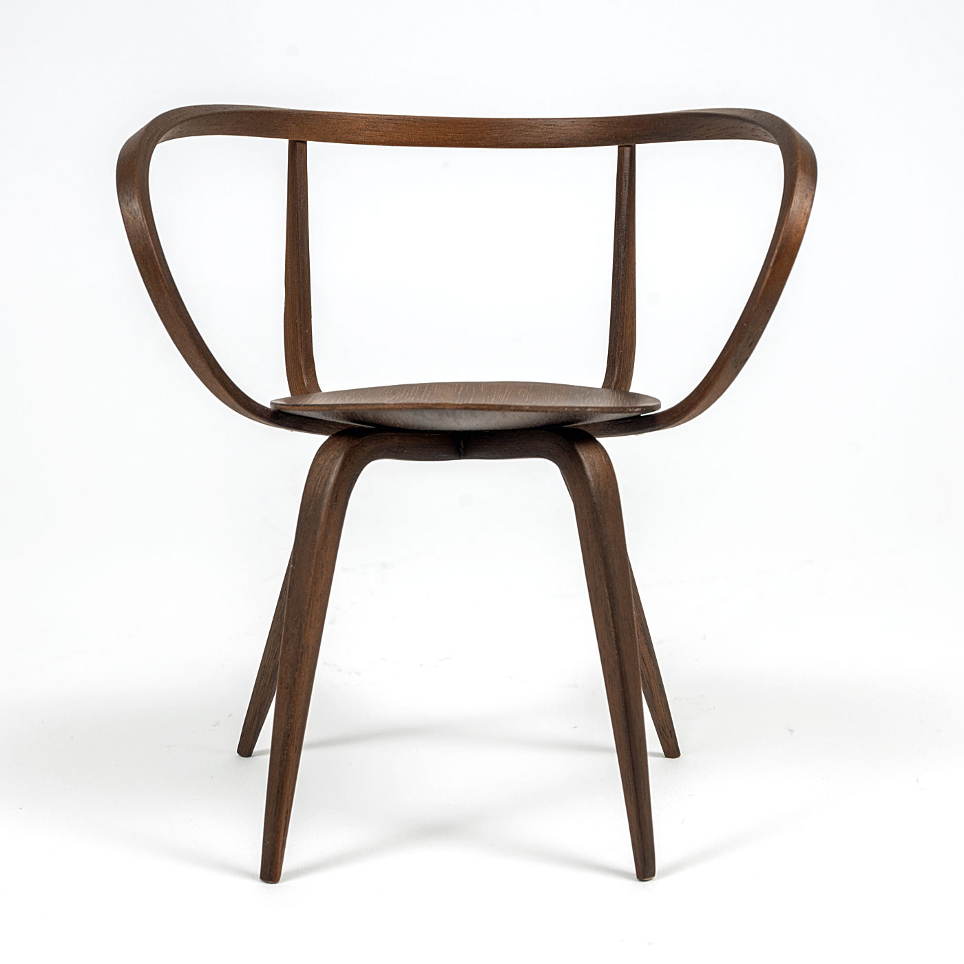 In den 1950er-Jahren entwarf George Nelson in seinem New Yorker Designstudio außergewöhnliche Stühle und Sessel. Zu seinen Ikonen zählt neben dem Coconut Chair und dem Marshmallow Sofa auch dieser Stuhl, der aus verleimtem und verformtem Schicht- und Sperrholz gefertigt ist. Aufgrund seiner an einen Brezel erinnernde Form erhielt der von Nelsons Mitarbeiter John F. Pile entworfene Stuhl die Bezeichnung Pretzel Chair.