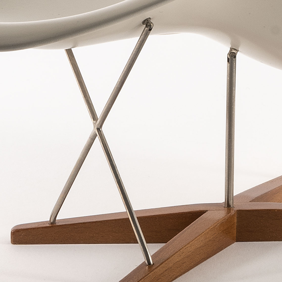 Im Wesentlichen entwarf Ray Eames La Chaise. Die ungewöhnliche, unverwechselbare Form spiegelt Rays Ausbildung als Malerin und ihre Vorliebe für organische Formen wider. Klare Linien und eine Gestaltung ohne überflüssige Ornamentik prägen den Entwurf. Für den MoMA-Wettbewerb entstanden zunächst zwei handlaminierte Prototypen aus glasfaserverstärktem Polyester mit einem Kern aus Schaumgummi. Die formstabile Kunststoffschale wurde mit fünf verchromten Stahlstäben auf einem Fußkreuz aus Eichenholz verankert.