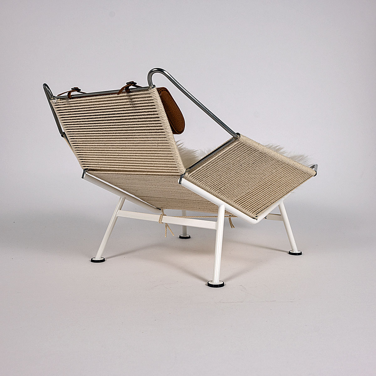 Trotz Wegners Vorliebe für Holz beweist er mit dem Flag Halyard Chair sein Innovationsgeschick und seinen Ideenreichtum. Er zollt damit den frühen Modernisten wie Le Corbusier, Mies van der Rohe und Marcel Breuer Tribut. Wegner beweist seine Meisterschaft im Umgang mit Edelstahl mit der gleichen Eleganz, mit der er auch Holz meisterhaft beherrscht.“
